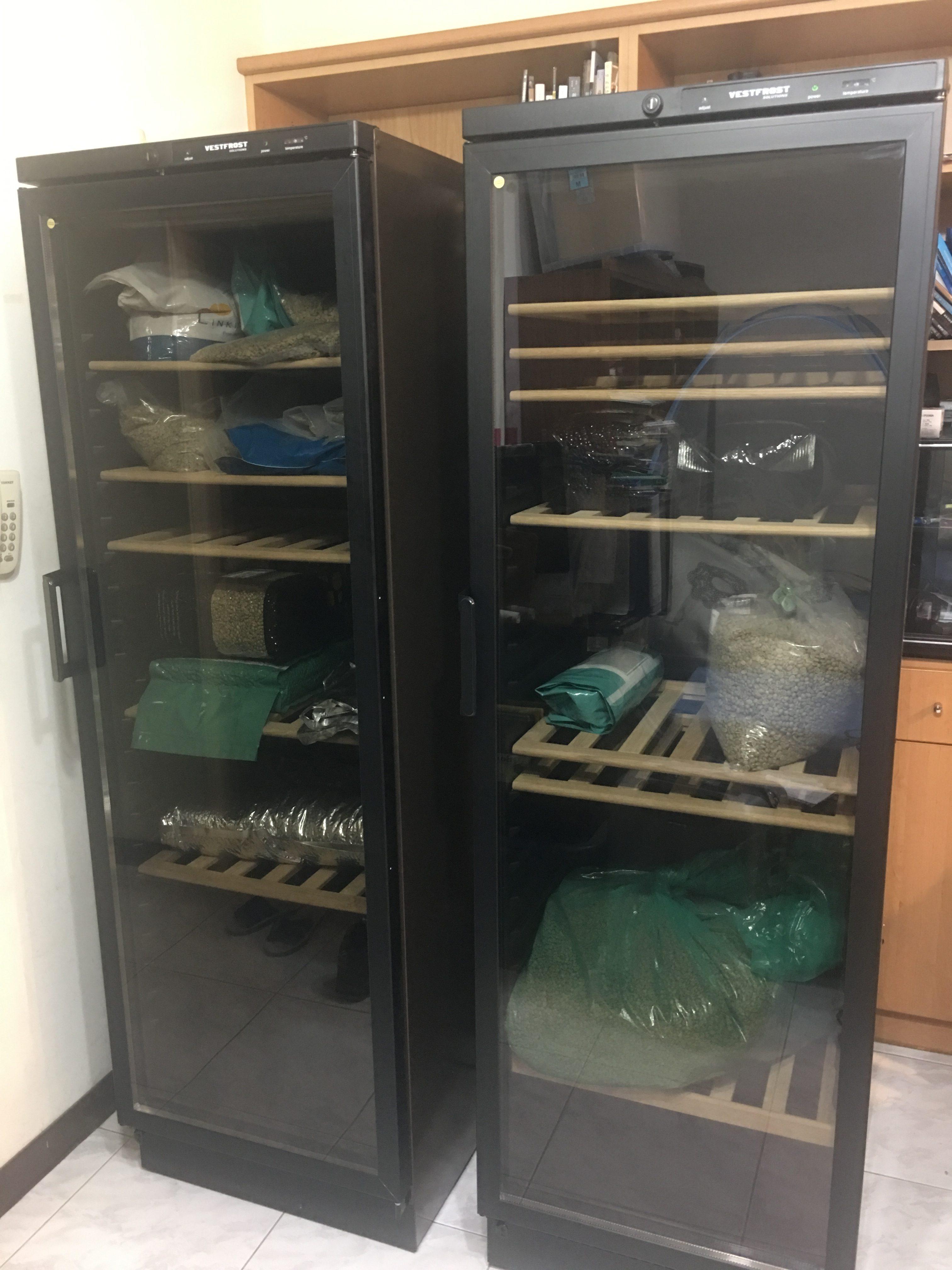 我們採用控溫設備儲藏購置的生豆,年均溫 18 度,再適當的使用除濕機來維持室內濕度值,給生豆提供一個安全無慮的儲存環境。