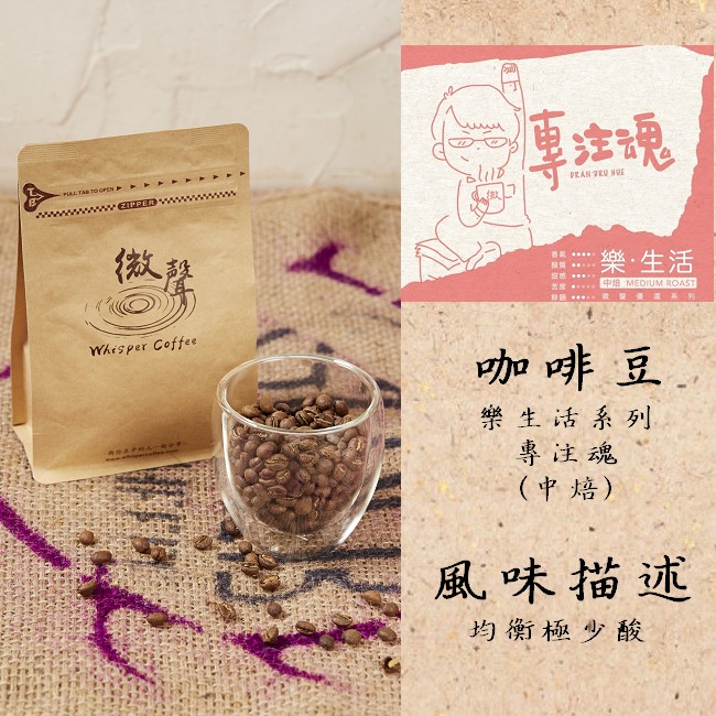品名:【微聲咖啡】樂。生活系列 專注魂 (中焙) 咖啡豆 (200g/包)