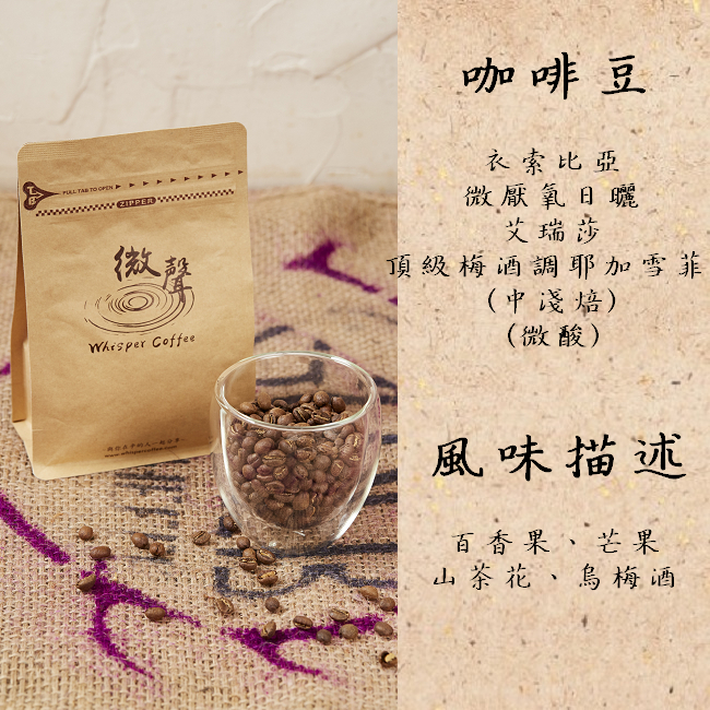 [咖啡豆] 衣索比亞 微厭氧日曬 艾瑞莎 頂級梅酒調耶加雪夫 (中淺焙) (200g/包)